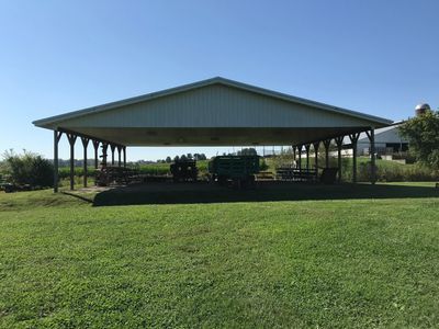 Creekside Pavilion is a great location for large groups (75+) as there is seating for 100 plus extra room for food serving lines and people to mingle. This rental also includes two bonfire pits. The pavilion is centrally located near the corn maze and a short walk to the play area. RESERVATIONS ARE REQUIRED so book today to secure your event date and get ready to make a fall memory!